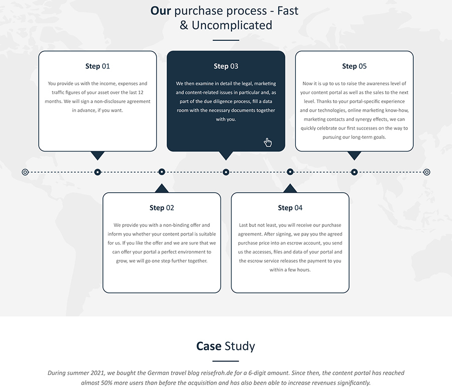 We buy your content portal and take it to the next level; while preserving its DNA. Take the step together with us or use the gained time and financial possibilities to pursue your new ideas.
